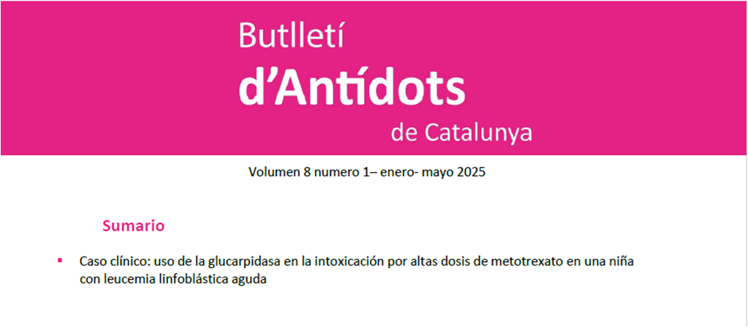 Ya está disponible el primer Boletín de Antídotos de Cataluña (BAC) del 2025, en el que se describe el uso de la glucarpidasa en la intoxicación por altas dosis de metotrexato en una niña con leucemia linfoblástica aguda.